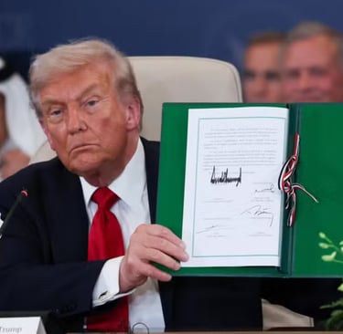 Trump assina o cessar fogo em Israel sobre a faixa de Gaza